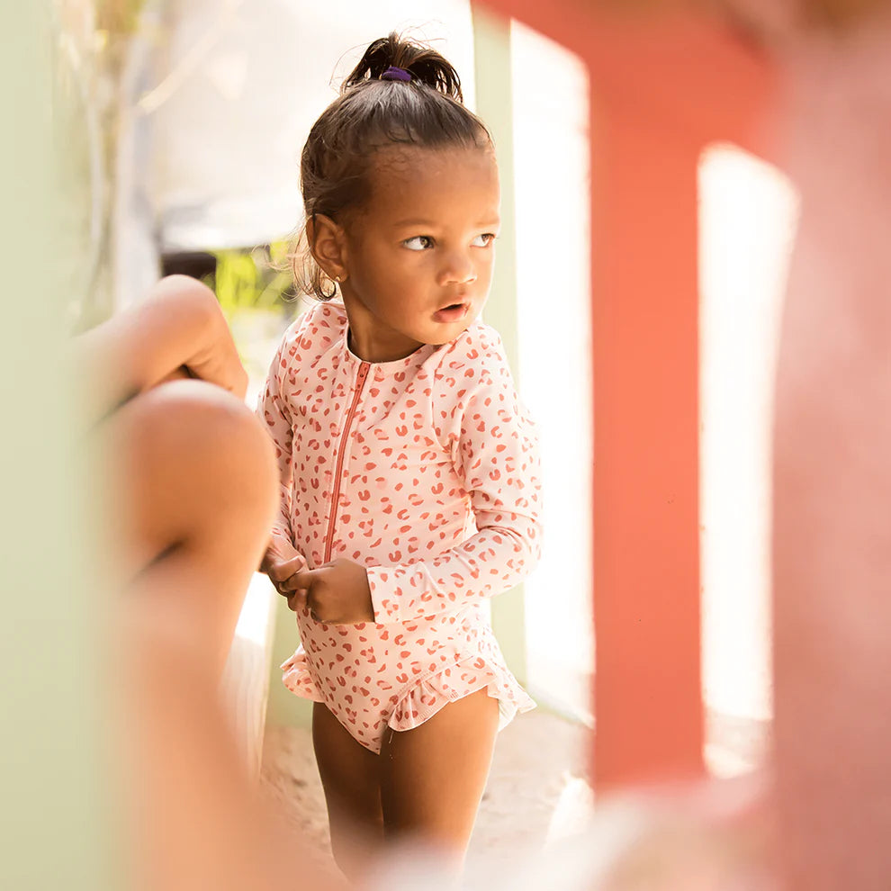 UV Badpak Meisjes Met Lange Mouwen - Oudroze - Leopard